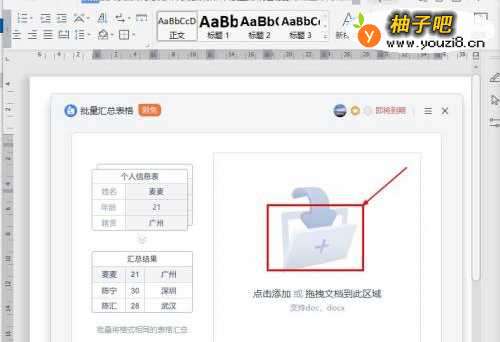 3在“批量汇总表格”对话框中,点击【添加文档】;