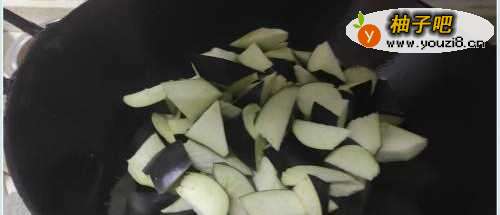 锅中加入40毫升食用油,烧至5成热,放入茄子。
