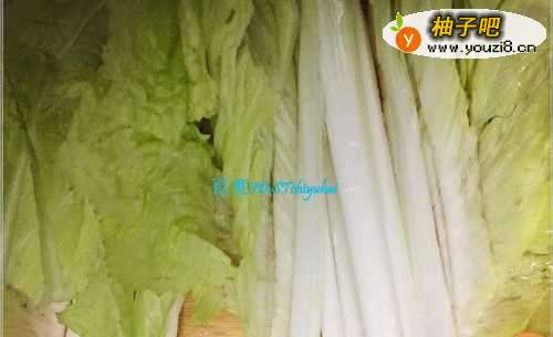 挑选主要食材--大白菜,白菜一般商超中都有售卖,挑选饱满新鲜的白菜,外面没有太多磕碰痕迹,菜茎不要有黑斑点之类。将白菜层层剥开,如果头部较老,可以考虑切除。一棵较大的白菜可能一次性吃不完,可以将剩余的放入冰箱保存。