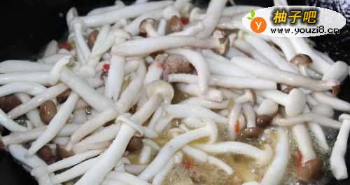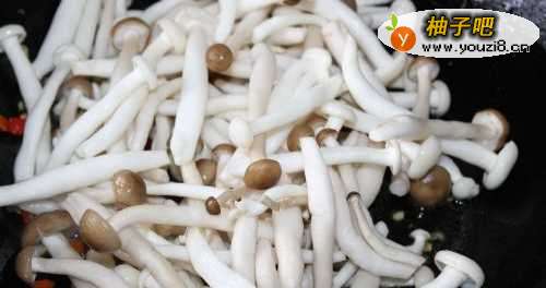 4放入蘑菇翻炒。