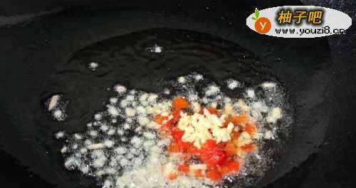 3锅中放油,放入姜末和泡脚炒香。