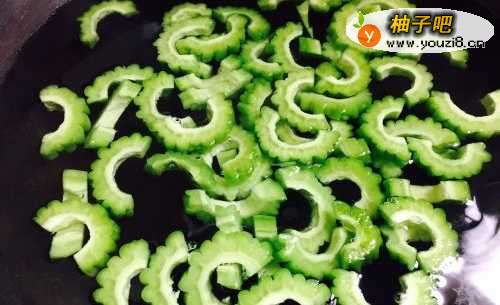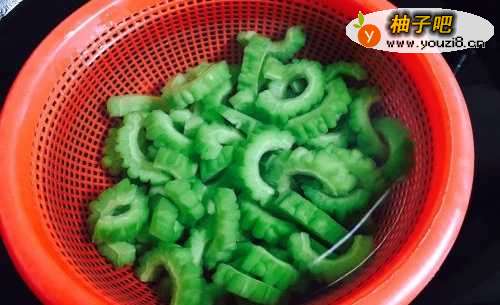 2水烧开之后把焯好的苦瓜过凉水后沥干水分备用。