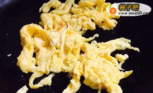 3接着开火,锅烧热之后加入适量油,油热了之后把提前打散的蛋液倒进去翻炒好后盛出备用!