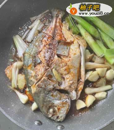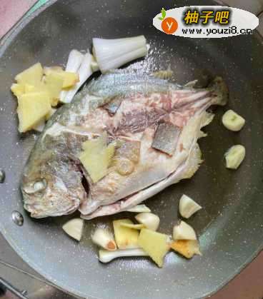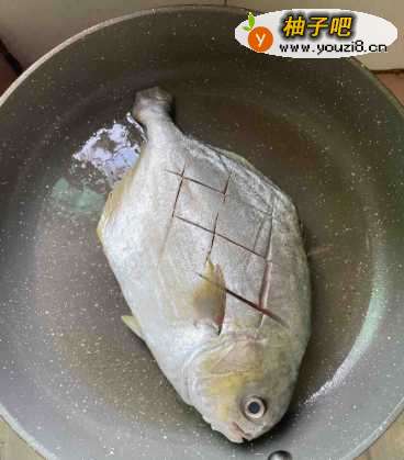 4这时候,我们起锅烧油,把鱼煎至微焦;