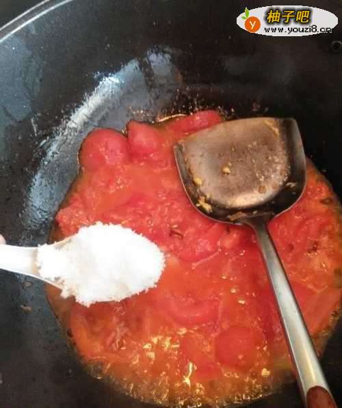 8再加入适量的白糖,平衡一下水果西红柿的酸味。
