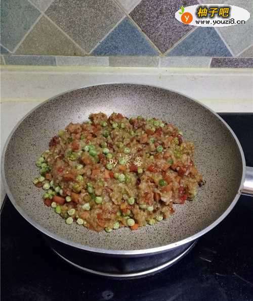 7放入糯米饭,翻炒均匀,这就是烧卖馅;