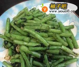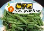 热锅放油,油热放入蒜末爆香,倒入豆角翻炒至杀青。