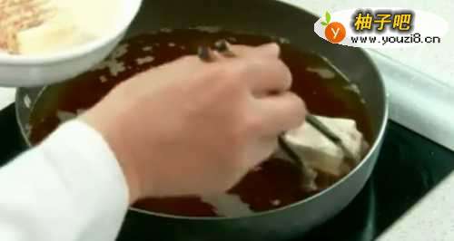 44、锅中烧油5成热,下入茄子炸定型,捞出放入盘中。