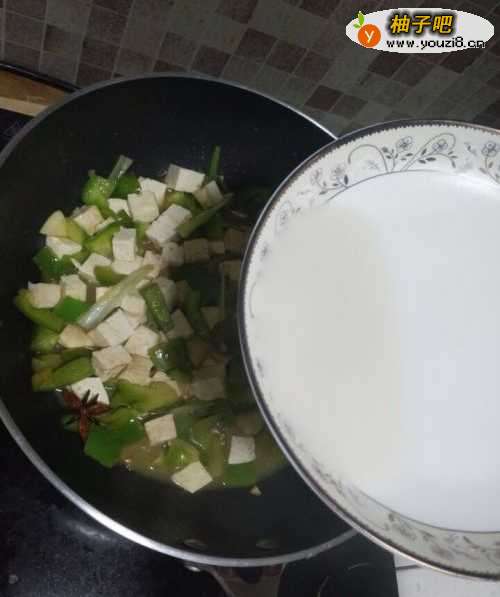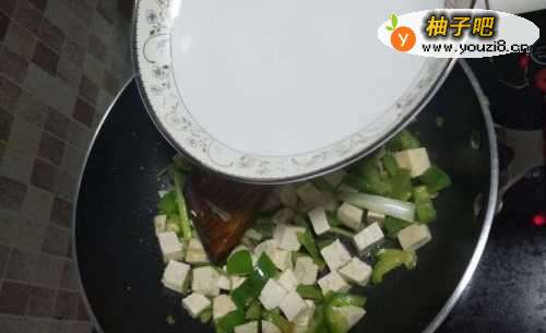 4往锅中放入少量清水,盖上锅盖,是豆腐变软