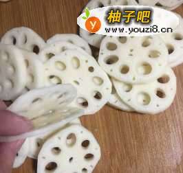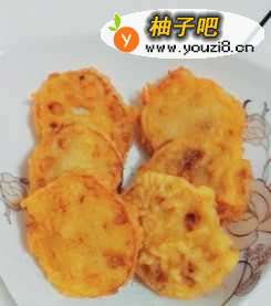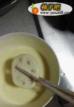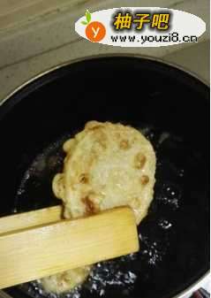 13炸第一次的颜色。把藕饼都炸一遍以后,在把藕饼下油锅在炸一次,炸到表面金黄就可以啦。