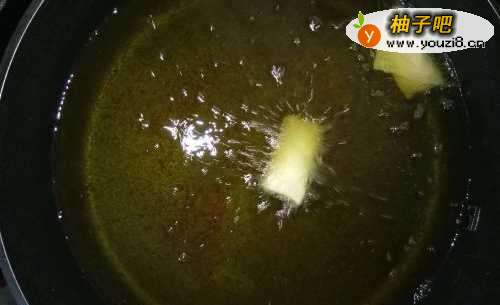 3如果锅里的油温足够时,将春卷下入锅里,春卷的附近的油会跟浪花一样,如下图;