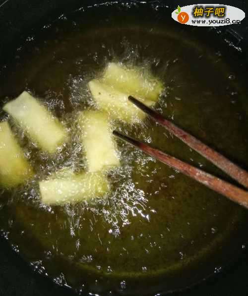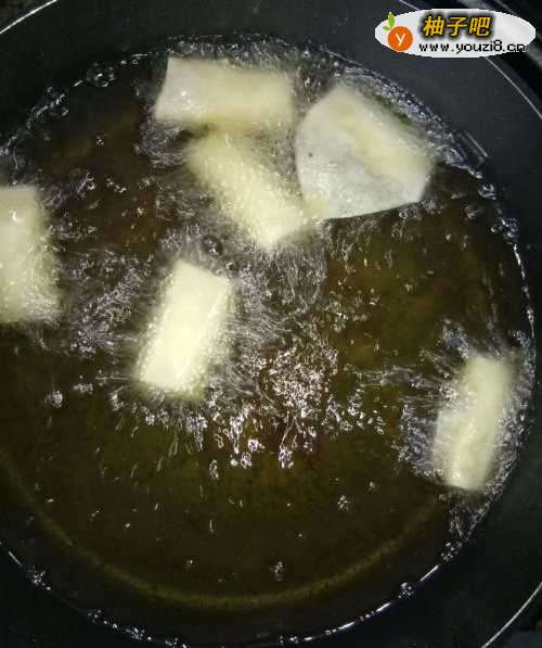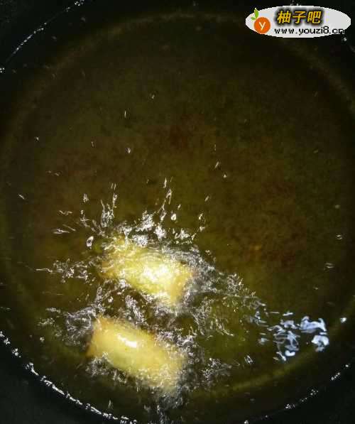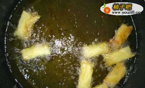 5如果春卷皮不小心下锅的时候散开了,可以用筷子马上将春卷皮再夹好,炸成型后,再放开;
