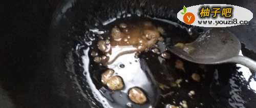 3锅内放油,放糖炒至变色。