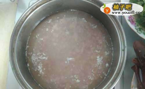 2肉糜加水煮开,撇去浮沫,如图: