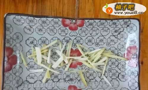 3取一个大一点的盘子,有鱼盘就更好了,在里面撒些姜丝和蒜丝。