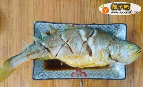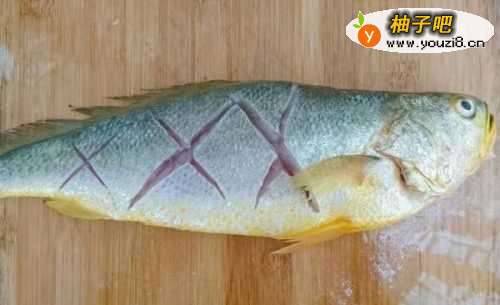 首先,将鱼去鳞,鳃和内脏,这步一般鱼贩都给你处理好了,所以我们将鱼买回后,在流水下冲洗干净即可。然后在鱼身两面都割上花刀,一是方便入味,二是吃起来也比较方便,再用食盐涂抹鱼身,包括切开口都要抹上,放在一边腌制20分钟。