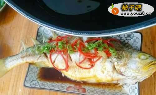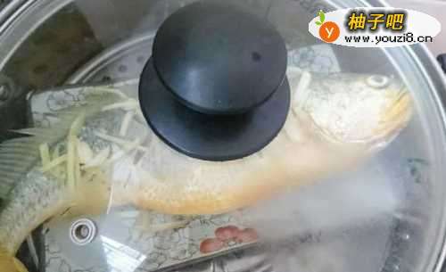 5蒸锅注水烧沸后,把鱼放进去,大火蒸8分钟,然后不要着急掀盖子,让鱼在锅里焖2分钟。