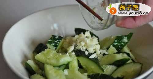 2加入切好的蒜末,小米椒,香菜。加入糖,盐,生抽,陈醋,香油。