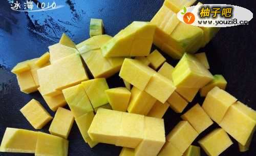 南瓜切丁,放入高压锅里压熟;