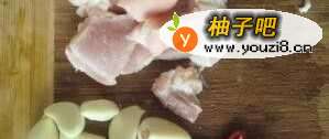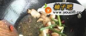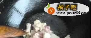 4炒锅倒油爆香五花肉。