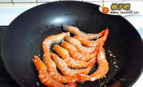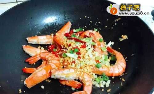 3留着炸蒜末的蒜油,用来炸一下虾