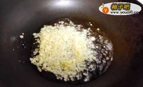2先用中火爆一下蒜末,把蒜末炸成金黄色后捞起备用