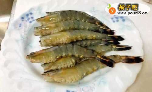 草虾洗净后剪掉脚和须,然后用厨房纸吸一下水