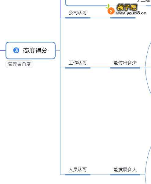 3第三个角度管理者角度,你的态度得分。就是能决定你在公司中的方向和前途的一部分也是尤为重要的。分三个认可,你对公司的认可,公司文化、愿景的认可,这个能决定你能不能跟公司一直走下去,第二个认可对在做工作的认可,就是你干的开不开心,与你的兴趣符合度。很多人在做自己不喜欢的工作, 那可能你真的不喜欢;可能你还没有充分理解这份工作;可能没有认可你的领导。总之,认清原因,找到兴趣点,认可你的工作,这是一个优秀职场人必须会的。第三个认可是人员认可,这个认可决定你能在公司有多大发展。人员认可包括对自己的认可对同事的认可和领导的认可,这个想要做到是很难的,因为你有可能说服不了自己,有可能高估自己,,,问题会很多,但是办法也是有的。相信别人,也相信自己,坚信的事情想办法说服别人,用你的工作技能,让别人认可你,需要证明的话就用数据来说话吧。总之认可和被认可是你工作能力的另一种表现。