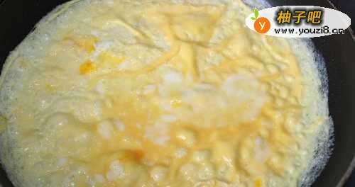7锅中放油,放入鸡蛋液做成蛋皮。