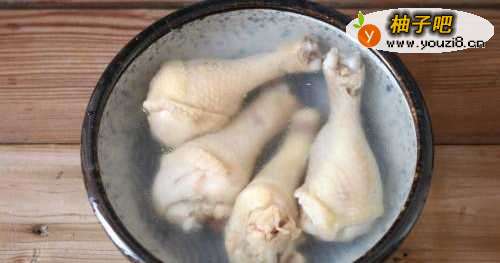 7然后把浸凉的鸡腿捞出,切件或是撕开