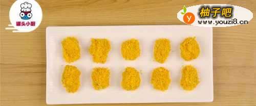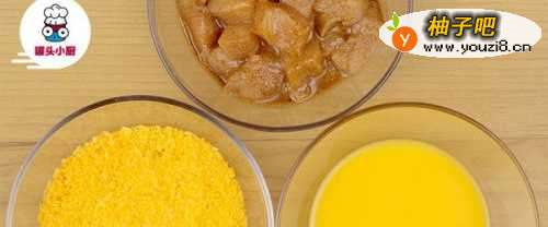 3鸡蛋2个打散,腌好的鸡肉一块块先沾上蛋液,再裹上面包糠,全部做好均匀铺在盘子上