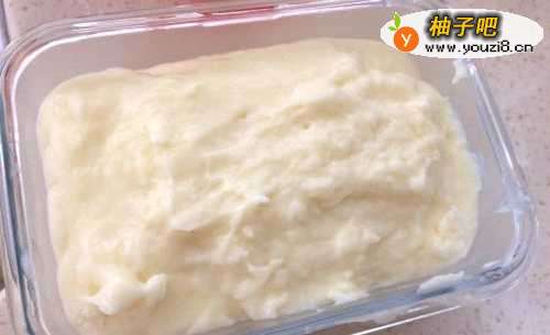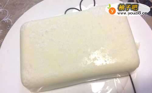 7放冰箱冰藏4个小时,或者更长时间,时间越长越好吃哦。取出来切块,沾上椰丝就可以开吃了,凉飕飕的,超级爽啊!
