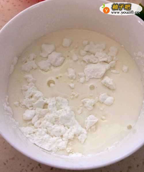 3三分之一的牛奶混合到玉米淀粉里面,搅拌均匀,备用;