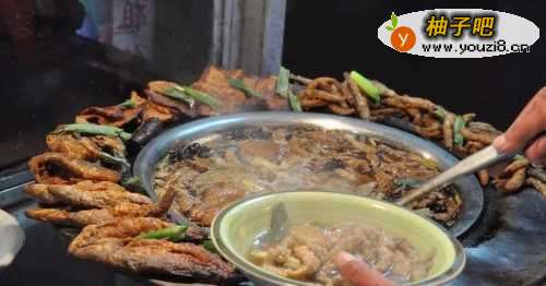 5第五:黄焖鱼。黄焖鱼选用的是黄河中的野生小杂鱼草鱼与小鲫鱼,加之各种大料以及卤汤焖制而成。色泽金黄,味道鲜美,鱼肉筋道、无刺、不腥、不牙碜,食后回味。