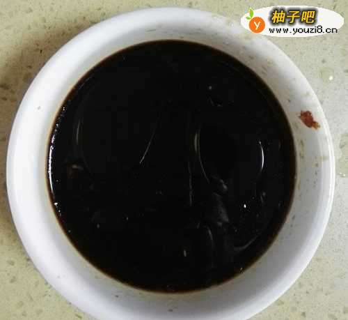 5调一个碗汁,生抽、老抽加少许盐和香油,再放入两份清水调匀。