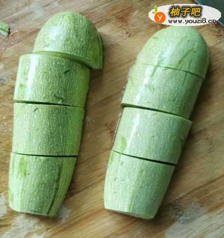 首先,我们将角瓜洗净切段,然后在切成片。