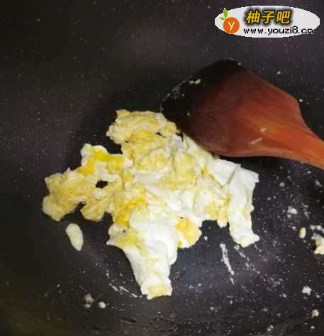 3起锅烧油,将鸡蛋炒至凝固。