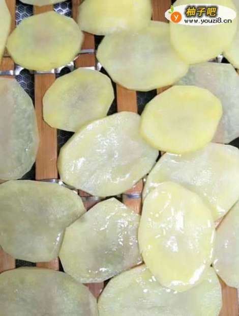 6起锅,热油,讲一个个土豆圆字压成饼状后放入锅中,中小火煎制~