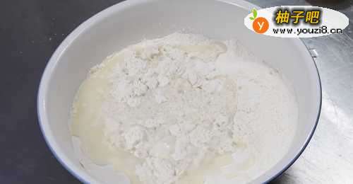 将盐和水一起倒入面粉中