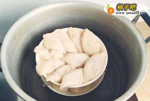 10半小时后,用筷子插入团子中心,不沾筷子,即为熟透。