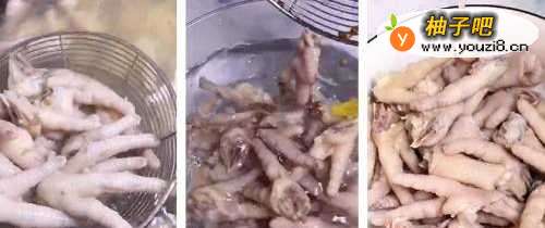 3捞出鸡爪,放入冰水中浸泡。侵泡至完全冷却后,用清水把表面的油脂冲洗掉,可多冲洗几遍,这样泡完后吃起来清脆爽口。