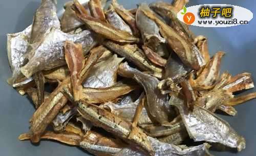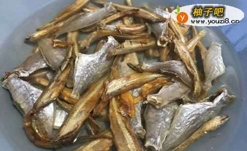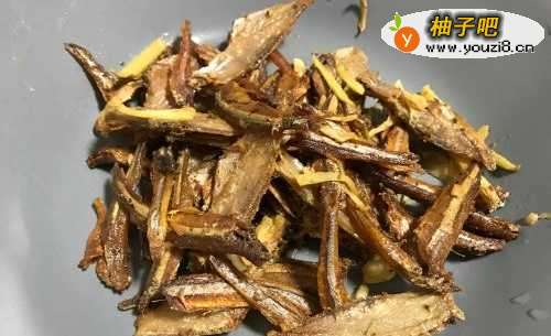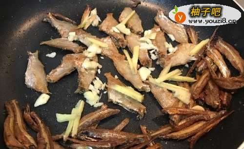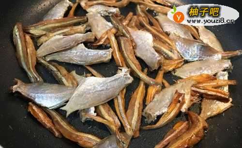 剥皮鱼干可单独煎,也可加上其它的小鱼仔一起。