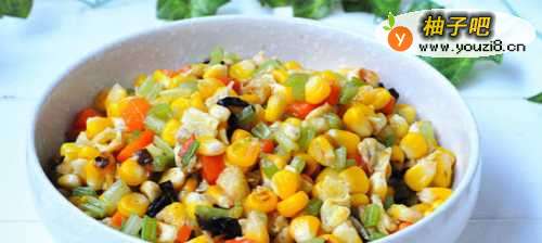 玉米棒洗净后把玉米剥下来,必须除去玉米须。将青菜切成段,然后将胡萝卜切丁。将木耳在清水中浸泡十分钟,洗净并切成颗粒以备后用。