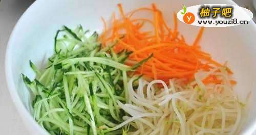 将黄瓜丝、胡萝卜丝塞入鸡翅内