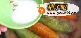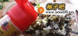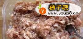 2肉馅加酱油、料酒、鸡精调匀上劲。