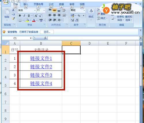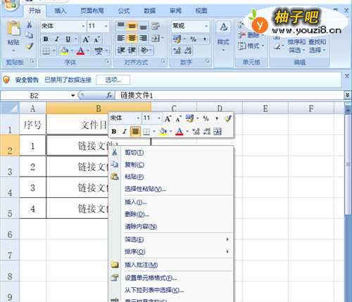鼠标右击【链接文件1】的单元格。