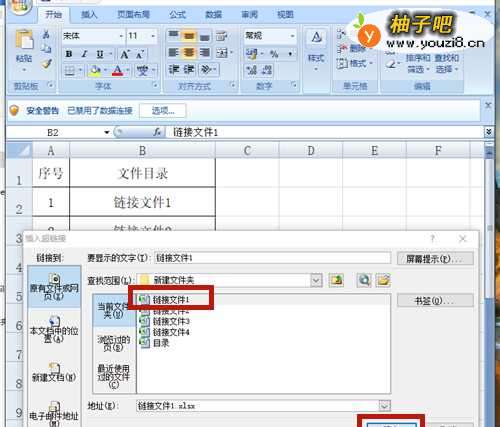 5选择链接的文件,如:链接文件1 。