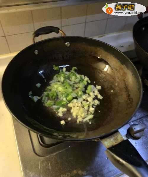 2锅里倒油。葱蒜姜末爆香,放入西红柿