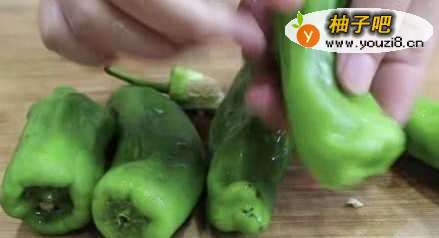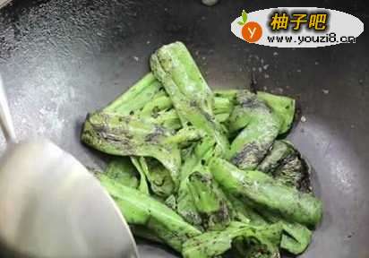 3把大青椒,放入没有油的锅中,翻炒,直至成焦糊状。