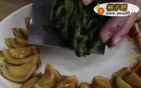 4把做好的大青椒,切成丝,与切好的皮蛋装盘。